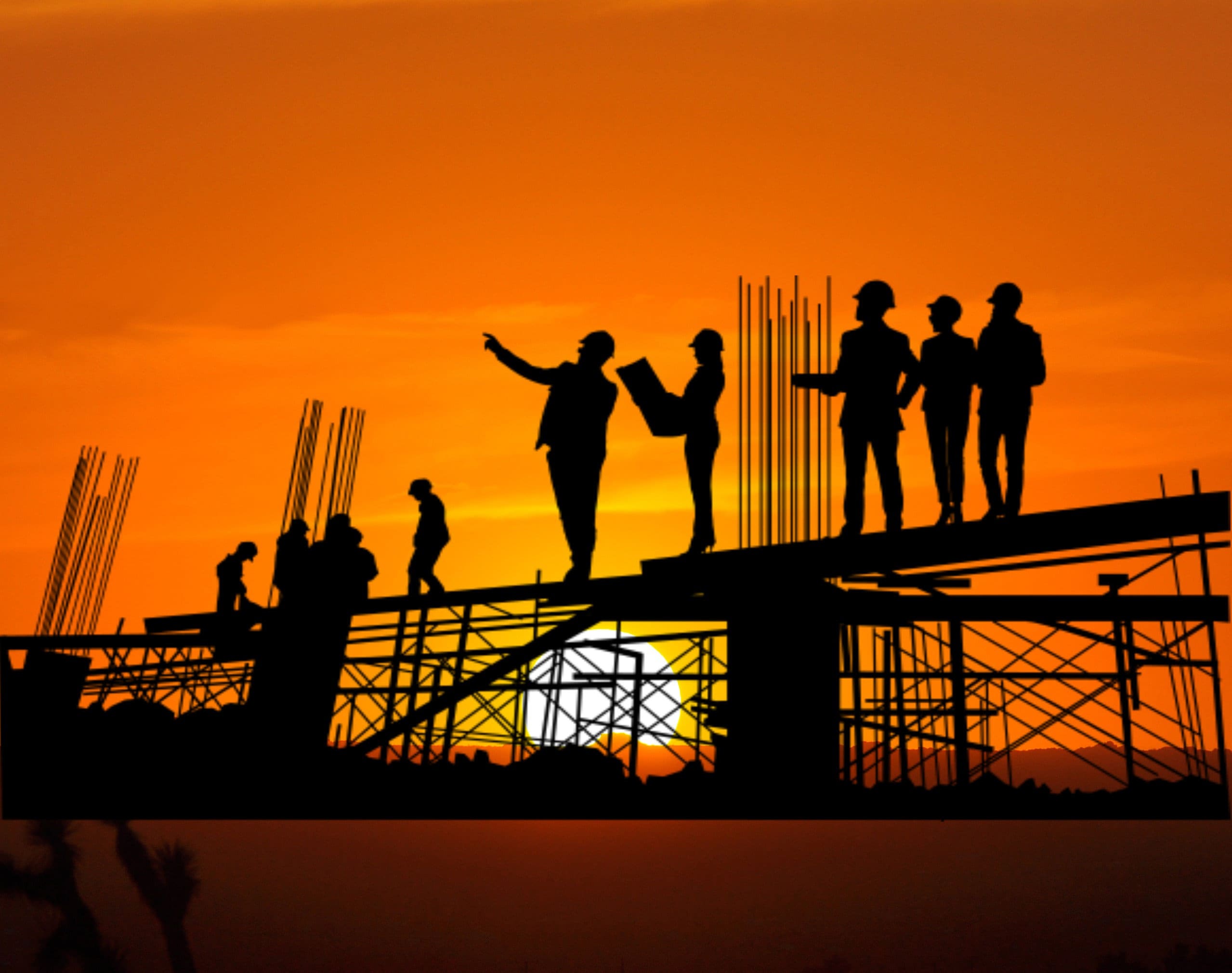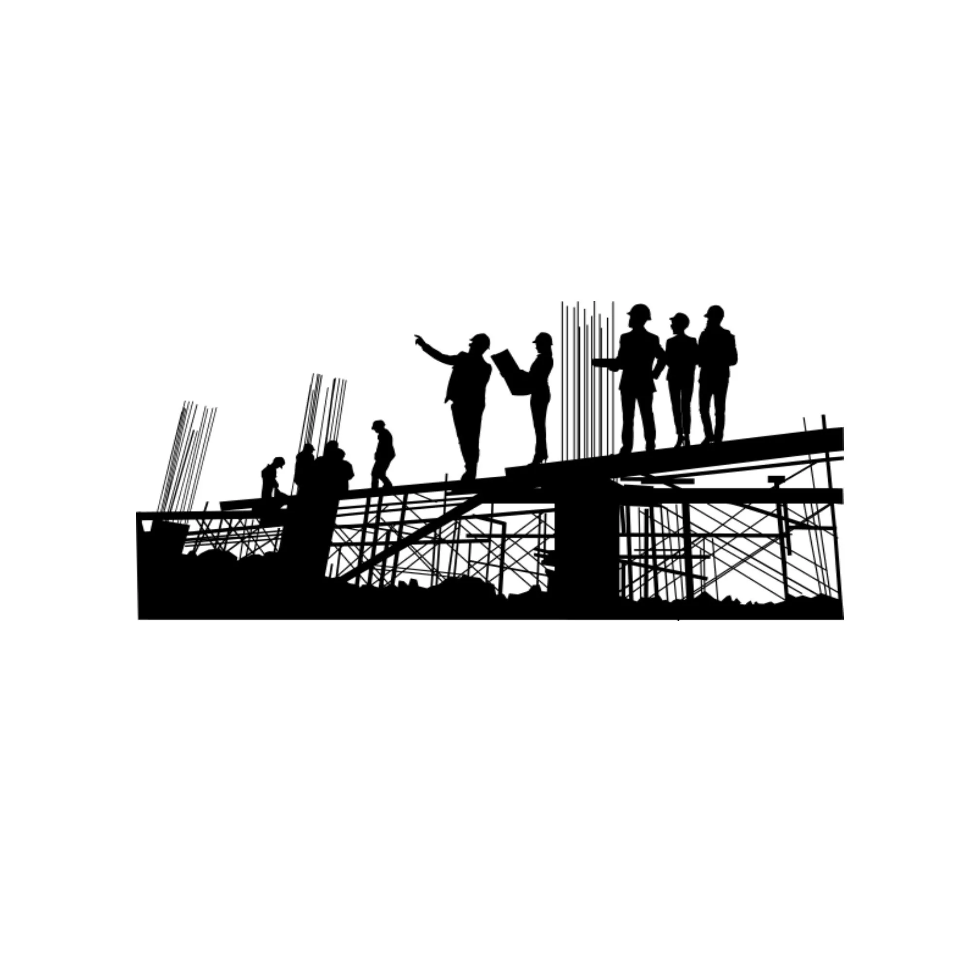 Civil engineer silhouette.Woman engineer silhouette.Architect Silhouettes.Silhouette of Engineer and worker on building site, construction site at sunset in evening time.Construction team png.